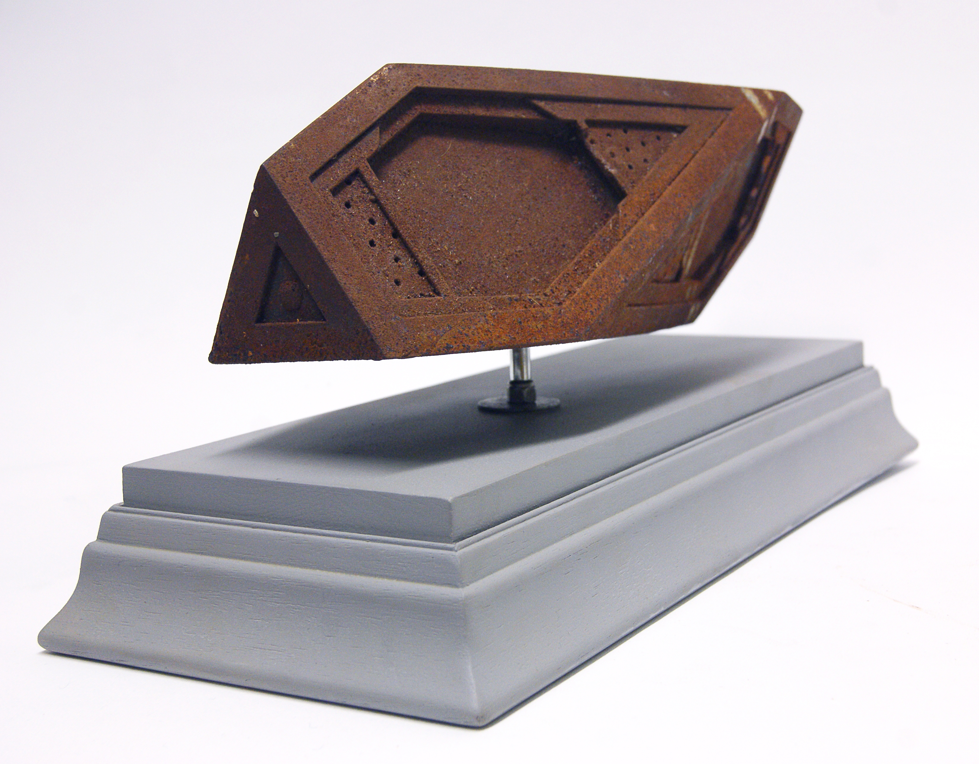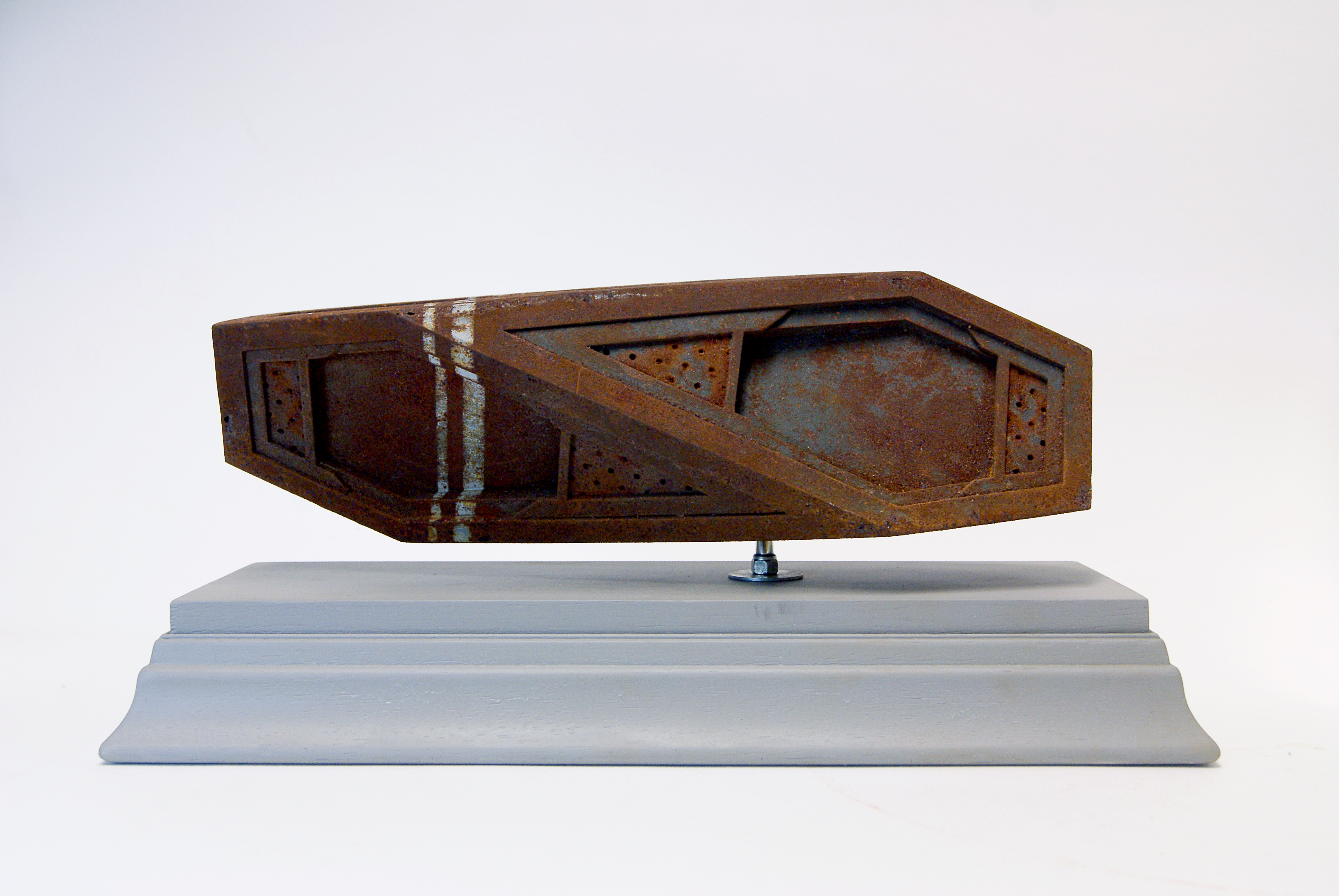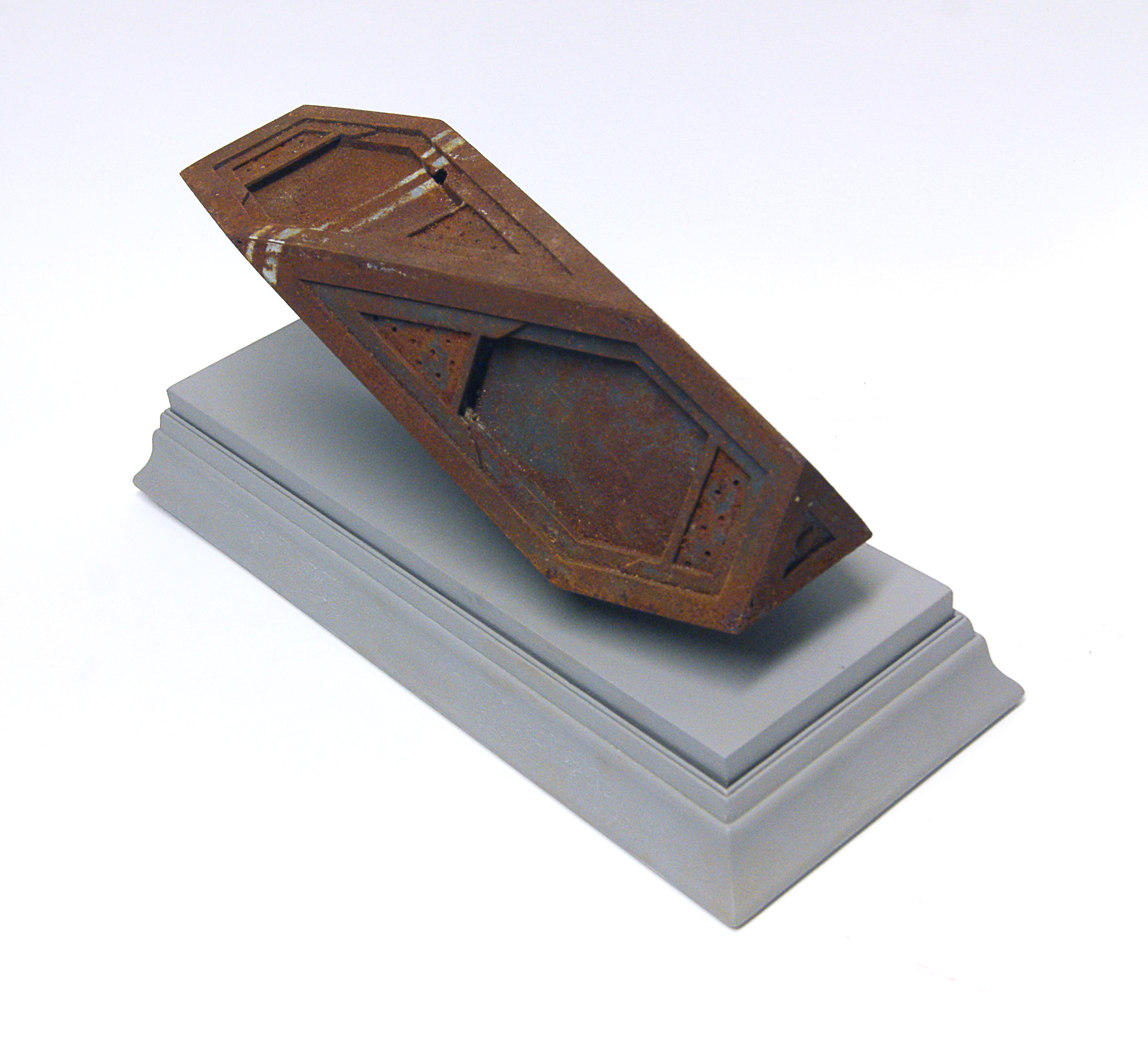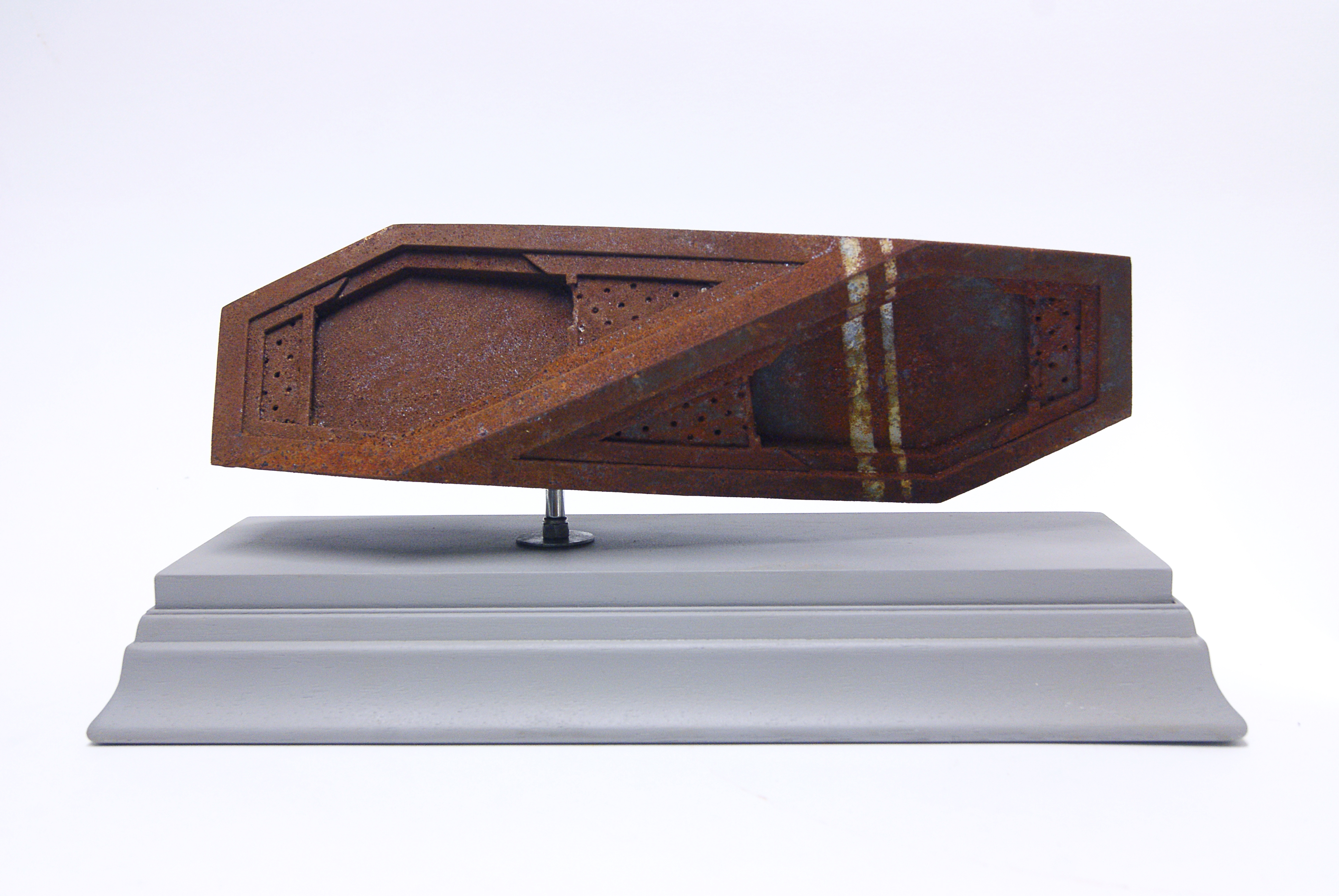 “Craft”, Polyester resin, powdered iron, wood, enamel paint, 40x18x16cms