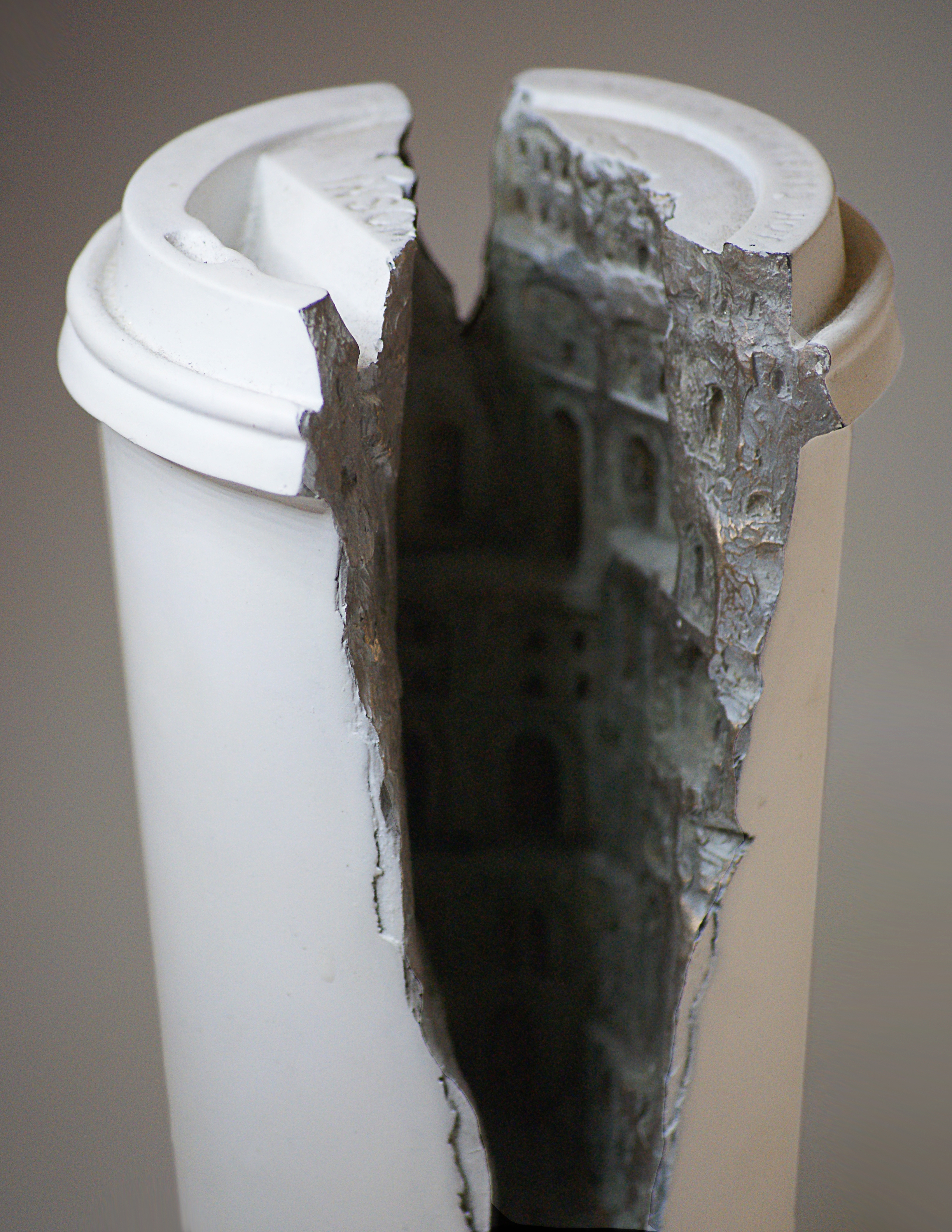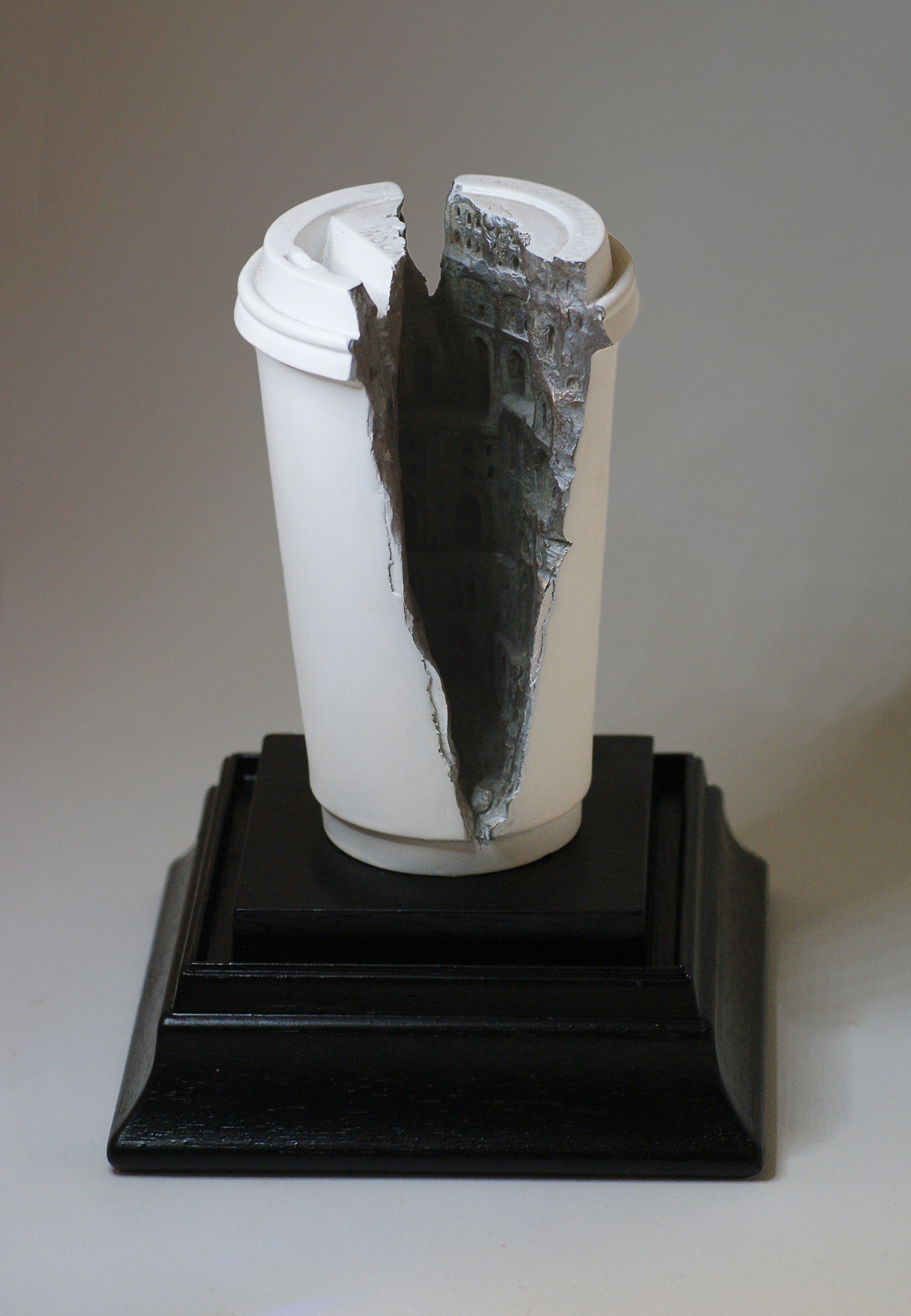 “Ephemeral I”, Polyester resin, powdered bronze, enamel paint, wood 15x20x15cms